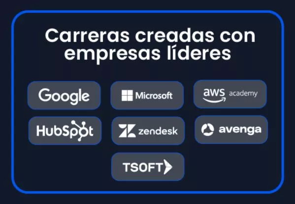 Carreras diseñadas junto a empresas líderes como Google, Microsoft, Hubspot y AWS.